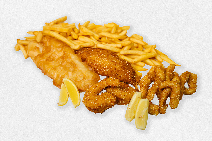 Crispy fish, tender calamari, golden prawns the ocean’s best all in one basket!
